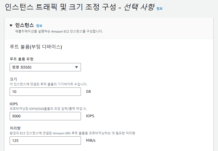 루트 볼륨을 gp3으로 설정하라는 것.