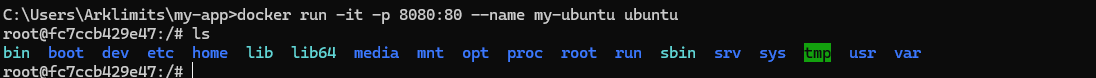 docker run -it -p 80:3000 --name my-ubuntu ubuntu