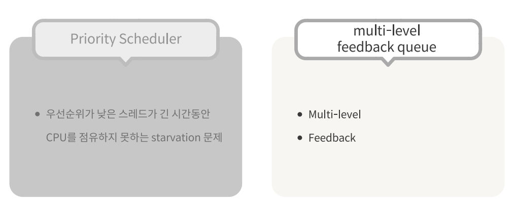 핀토스 1주차 Option 과제인 Advanced Scheduler를 구현해봤습니다. 기존의 Priority Scheduler의 경우에는 우선 순위가 낮은 스레드가 오랫동안 CPU를 점유하지 못하는 문제가 발생할 수 있습니다. 이로 인해 스레드의 평균 반응 시간이 너무 길어지는 문제가 발생합니다. 이를 해결 하기 위한 방법으로 multi-level feedback queue scheduler가 제시되었습니다. MLFQS는 Priority에 따라 여러 개의 Ready Queue가 존재하고, Priority에 영향을 주는 변수가 있어서 Feedback으로 Priority를 조절할 수 있습니다. 이 때, multi level까지는 구현하기 힘들 것 같아서 Feedback만 구성을 해봤습니다. 사실 상 feed..